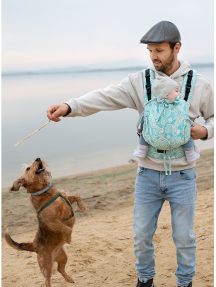 Die Babytrage Grow Air ist luftige Babytrage, die zusammen mit Ihrem Kind wächst. Spezielles Netz, das in das Panel eingebaut wird, ermöglicht bessere Ableitung der Wärme während sengend heißer Tage. Das Netz kann dank beigefügter Klappe mit derselben Vorlage bedeckt werden, was wiederum ideale ganzjährige Lösung ist.
