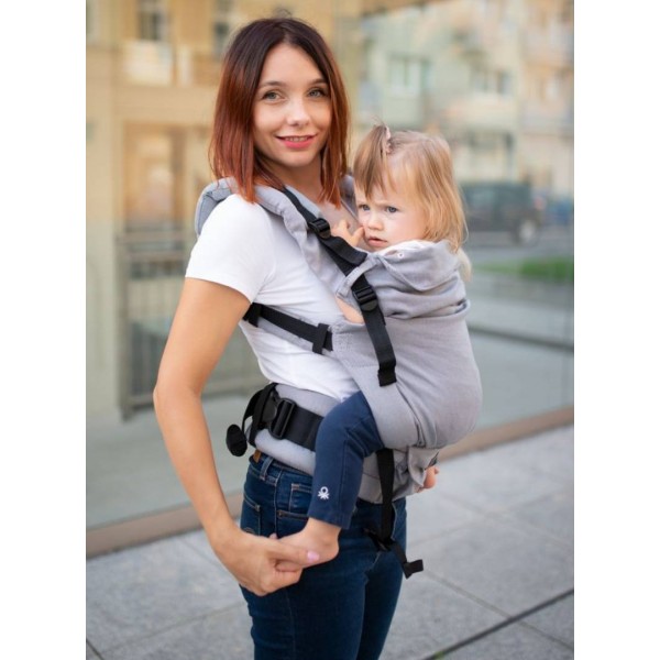 Die Babytrage besitzt zusätzliche Möglichkeit des Anlegens der Schnallen in der Nähe des Popos vom Kind, was zusätzlich das Becken aufkrempelt und hilft, den Rücken bei kleinsten Kindern abzurunden, was ihrem Körper sichere, ergonomische Position gibt. Das ist ideale Babytrage für ganze Periode des Tragens, die sich für alltägliche Spaziergänge und für längeren Ausflug eignet. Stark gefüllter Hüftgürtel wird bereiten, dass das Gewicht des Kinds weniger empfindlich wird und die Babytrage wird ideal bei den Personen mit den Problemen der Wirbelsäule.