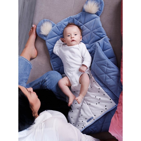 Weiche Füllung isoliert und hält die Wärme ausgezeichnet und dadurch kann der Schlafsack auch als die Matte für die Spiele dienen und er kann die Rolle des Babyhörnchens oder des Steckkissens spielen, das Ihren Winzling von ersten Lebenstagen einhüllen wird. Sein Außerteil ist widerstandsfähiges und angenehmes Material Minky.