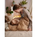Weiche Füllung isoliert und hält die Wärme ausgezeichnet und dadurch kann der Schlafsack auch als die Matte für die Spiele dienen und er kann die Rolle des Babyhörnchens oder des Steckkissens spielen, das Ihren Winzling von ersten Lebenstagen einhüllen wird. Sein Außerteil ist widerstandsfähiges und angenehmes Material Minky.