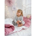 Weiche Füllung isoliert und hält die Wärme ausgezeichnet und dadurch kann der Schlafsack auch als die Matte für die Spiele dienen und er kann die Rolle des Babyhörnchens oder des Steckkissens spielen, das Ihren Winzling von ersten Lebenstagen einhüllen wird. Sein Außerteil ist widerstandsfähiges und angenehmes Material Minky.