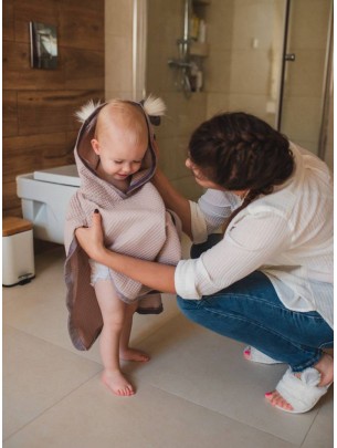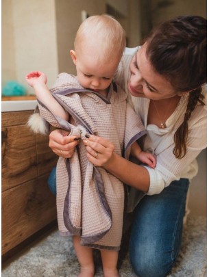 Das Badeponcho Buuble Hop - ist ideale Bekleidung für den Körper des Kinds im Alter von 1 zu 4 Jahren nach dem Bad in der Badewanne, im Schwimmbad oder während der Sommerferien und des Spiels am See.