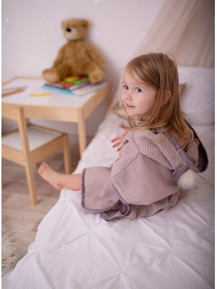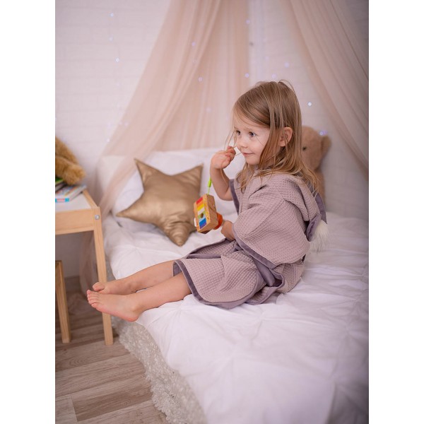 Das Kinderponcho wurde aus weichem und fleischigem Waffelgewebe hergestellt, 100% Baumwolle, die hervorragend das Wasser absorbiert und schnell trocken wird und sichert gleichzeitig die Wärme und die Bequemlichkeit.