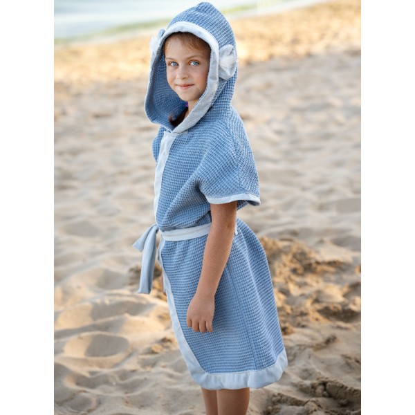 Das Kinderbadeschlafrock Bubble Hop – ist die Kombination des Badetuchs und des weichen Schlafrocks, er wird in der Taille gebunden.
