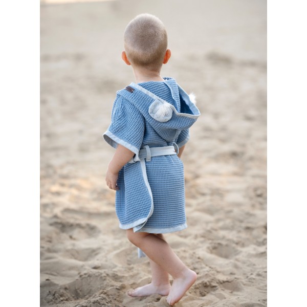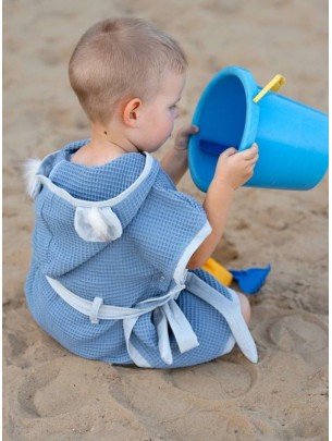 Das Badeponcho Buuble Hop - ist ideale Bekleidung für den Körper des Kinds im Alter von 1 zu 4 Jahren nach dem Bad in der Badewanne, im Schwimmbad oder während der Sommerferien und des Spiels am See.