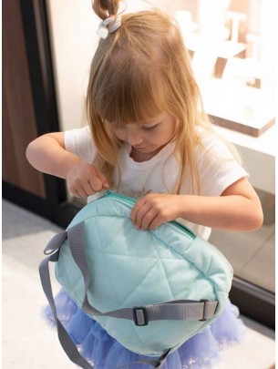 Das Rucksäckchen ist leicht und sehr reizvoll und gleichzeitig widerstandsfähig und geräumig, weil es in ihm den Platz für kleinste Kinderschätze oder beliebtes Plüschtier und auch unerlässliche Handtücher, Imbisse oder Trinkflasche gibt. Dazu besitzt es regulierbare Schulterriemen und es wird mit dem Reißverschluss hochgezogen.