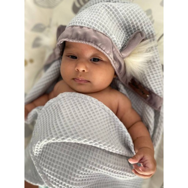 Bubble Hop Baby Towel Mint Grey  made of soft and delicate cotton waffle fabric is perfect after bath at home, at the pool or during a trip to a hotel.