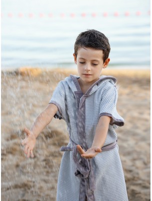 Children's Bathrobe can be used to dry them after bathing, to wrap up after the pool as well as a real bathrobe. It can be used for evening bathroom activities such as brushing teeth, spending an evening with a book in your own bed or sleeping bag, or worn during pajama fun with siblings.