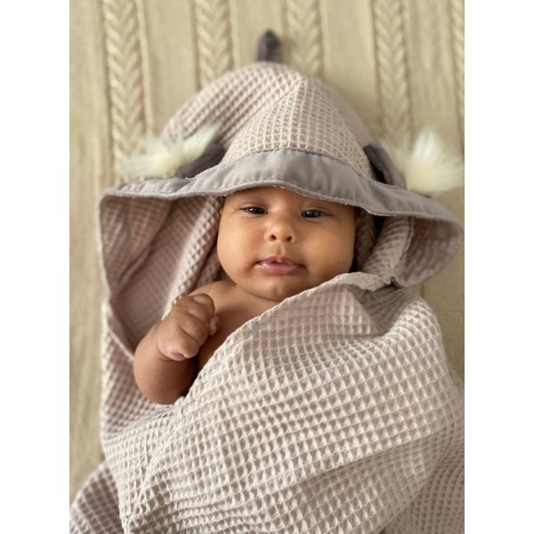 Bubble Hop Baby Towel Cappucino  made of soft and delicate cotton waffle fabric is perfect after bath at home, at the pool or during a trip to a hotel.