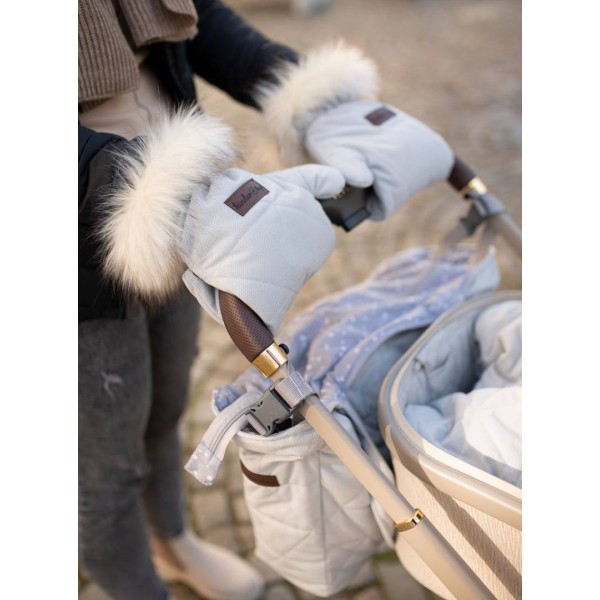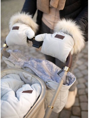 Rękawice otulają rączkę wózka swoją powierzchnią dookoła, dzięki czemu dłoń niema żadnej styczności z zimnym uchwytem.