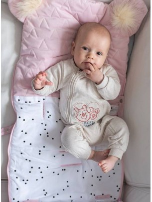 Miękkie wypełnienie świetnie izoluje i utrzymuje ciepło, dzięki czemu śpiwór może posłużyć również jako mata do zabaw oraz może pełnić rolę rożka czy becika, który otuli Twojego maluszka od pierwszych dni życia. Zewnętrzna jego część to wytrzymały i miły materiał minky.